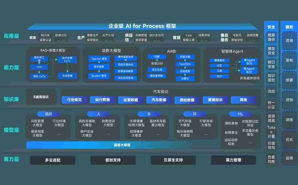 端到端的一站式AI工作空间深度融合了从企业战略规划到日常经营的全流程业务板块,,,,定向解决车企内部领域多、、部门多、、、、链条长、、场景碎片化等难题,,支持车企快速构建以AI为核心的生产力写作体系,,实现任务执行与AI能力的无缝集成与交互
